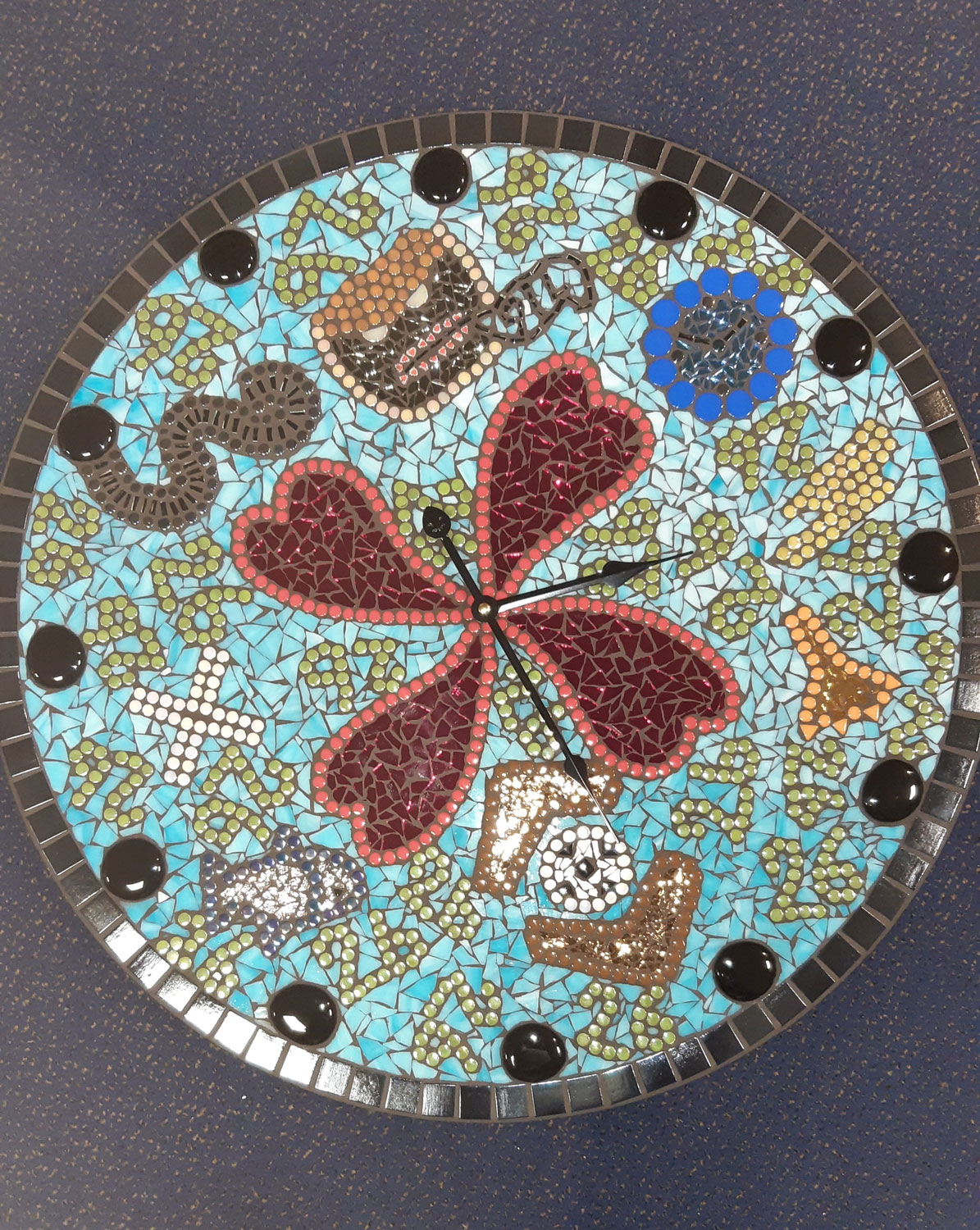 Met veel plezier heeft Anna deze mozaïek-klok gemaakt met het gedicht van Eva Gerlach in haar hoofd.