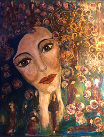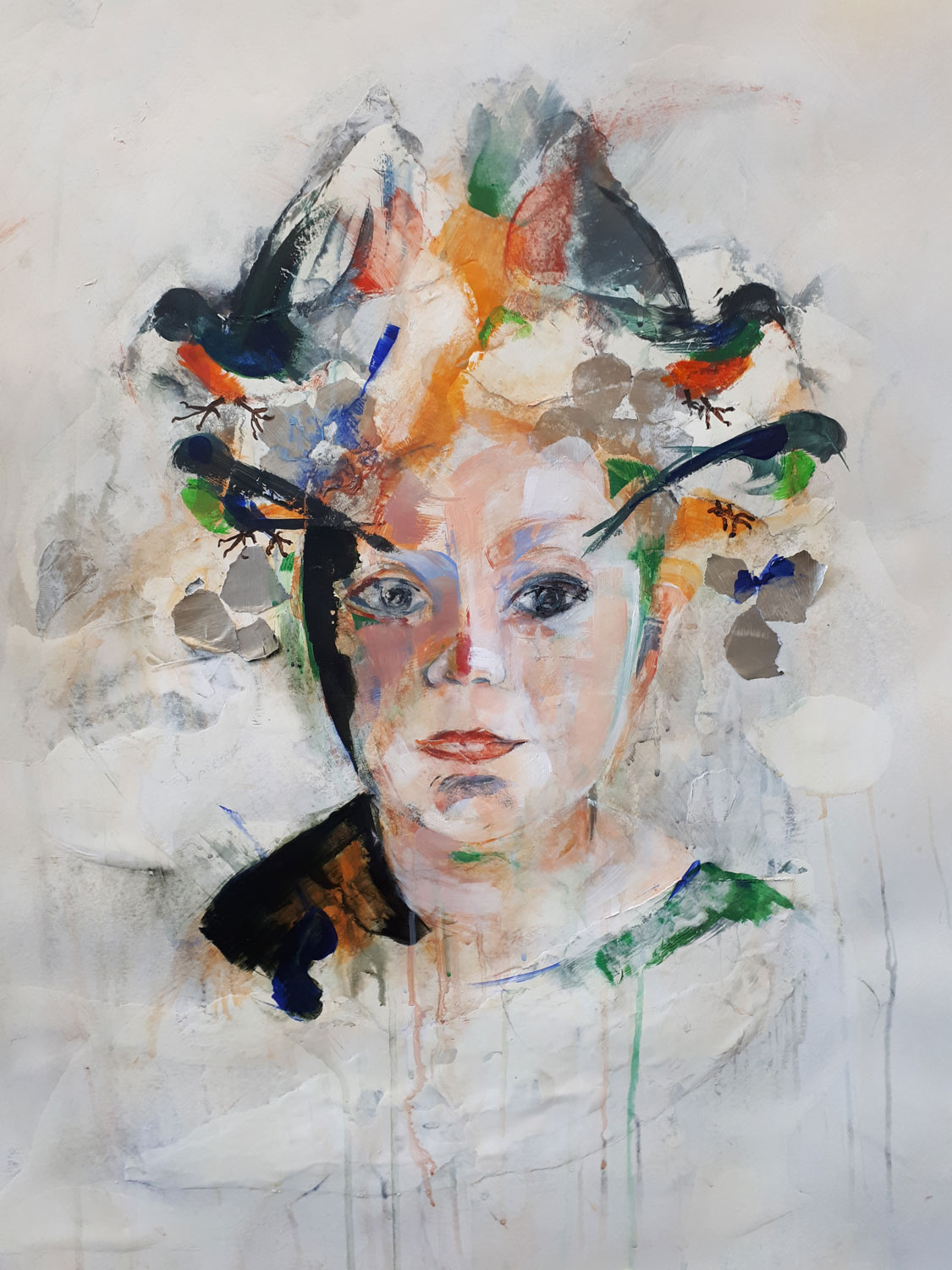 Voor deze expositie heeft zij gekozen voor een portret: ‘de blik ’. Voor Connie is schilderen als zichtbaar dromen: ‘zodra het model op het schilderij mij aankijkt stop ik- dan is ze er’.
