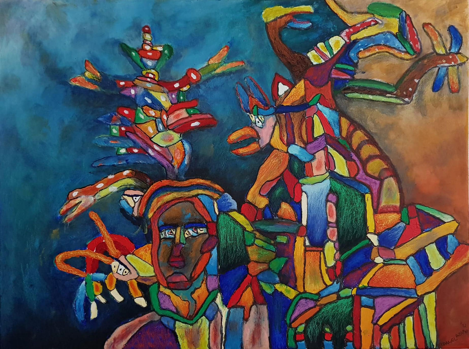 Bij Pastorie De Elleboog in Amersfoort (voorheen Jans Pakhuys) maakt Manuel met veel plezier tekeningen en schilderingen. Meestal op doeken van groot formaat, voor de uitdaging. In zijn werken gebruikt hij acrylverf, olieverf, pastel en ecoline. Door zijn grote fantasie, ontstaan er gelaagde schilderingen met allerlei wezens, dieren en verschillende werelden. Zijn werken hebben altijd een Engelse titel.