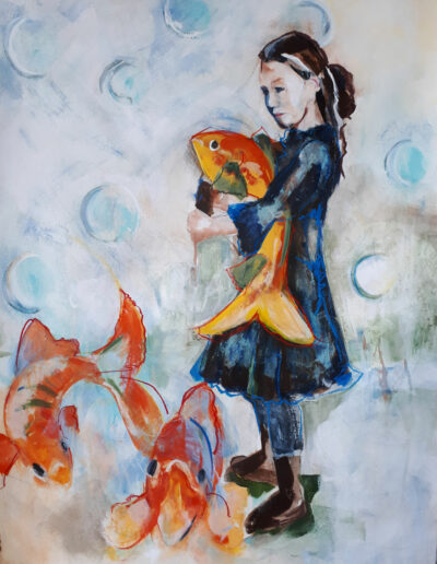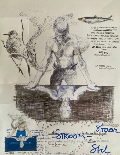 Voor deze expositie, naar het gedicht “Stroom” van Eva Gerlach, heeft haar kleindochter model gestaan.